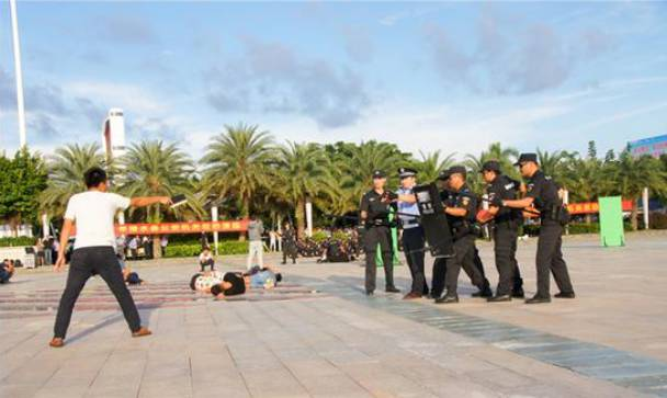 為加強(qiáng)陵水縣公安機(jī)關(guān)處置恐怖突發(fā)事件能力,確保黨的十九大期間安全穩(wěn)定的社會(huì)環(huán)境,維護(hù)全縣社會(huì)治安大局穩(wěn)定,近日,陵水縣在陵水動(dòng)車站站前廣場(chǎng)開展2017年反恐處突實(shí)戰(zhàn)演練。
