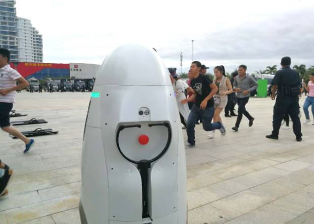 機(jī)器人ANBOT現(xiàn)場(chǎng)播報(bào)協(xié)助民警進(jìn)行人群撤離?