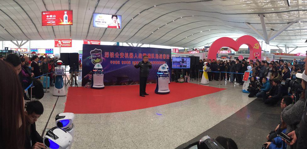 今天上午,在深圳北站在春運期間,為加大對違法犯罪的打擊力度,確保旅客出行安全,深圳鐵路警方聯(lián)合人工智能協(xié)會在深圳北站率先投入20臺警用機器人,組成“機器人警察編隊”為春運保駕護航。