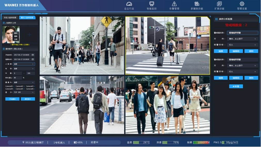 人員出入控制系統是安防行業最貼合“防”字的設備,其他設備大多數是在威脅產生之后才發揮作用,而出入控制系統則相反。萬為機器人具有人像識別功能,在特定環境或場地,機器人可設置人像分為三個等級:白名單、黑名單、入侵人員名單。