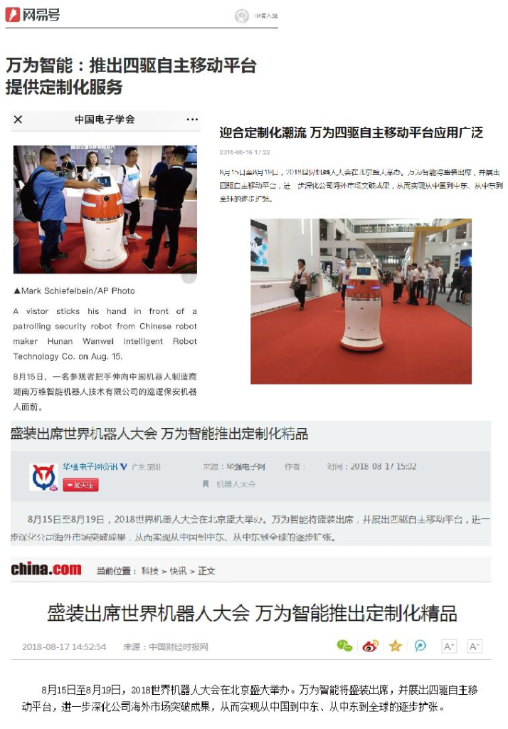 萬為機器人作為本次展會的智能安防機器人代表榮獲本屆大會最佳創新產品獎,是主辦方乃至整個機器人行業對于萬為在安防領域所獲成就的認可。截至目前,萬為智能安防機器人系列產品已為用戶連續提供8760小時的服務,已服務于廣州白云機場、深圳寶安機場、湖南濱江文化園、內蒙伊利園區、沙特阿卜杜拉國王科技大學等眾多公共服務場所。