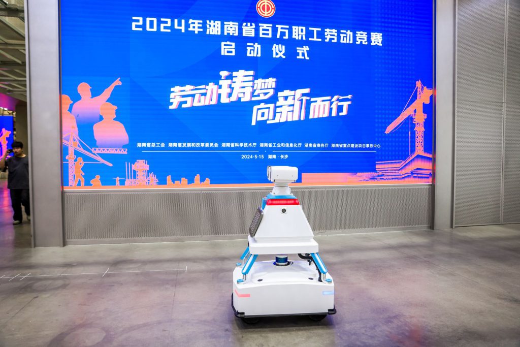 安保巡邏機器人亮相湖南百萬職工勞動競賽啟動儀式
