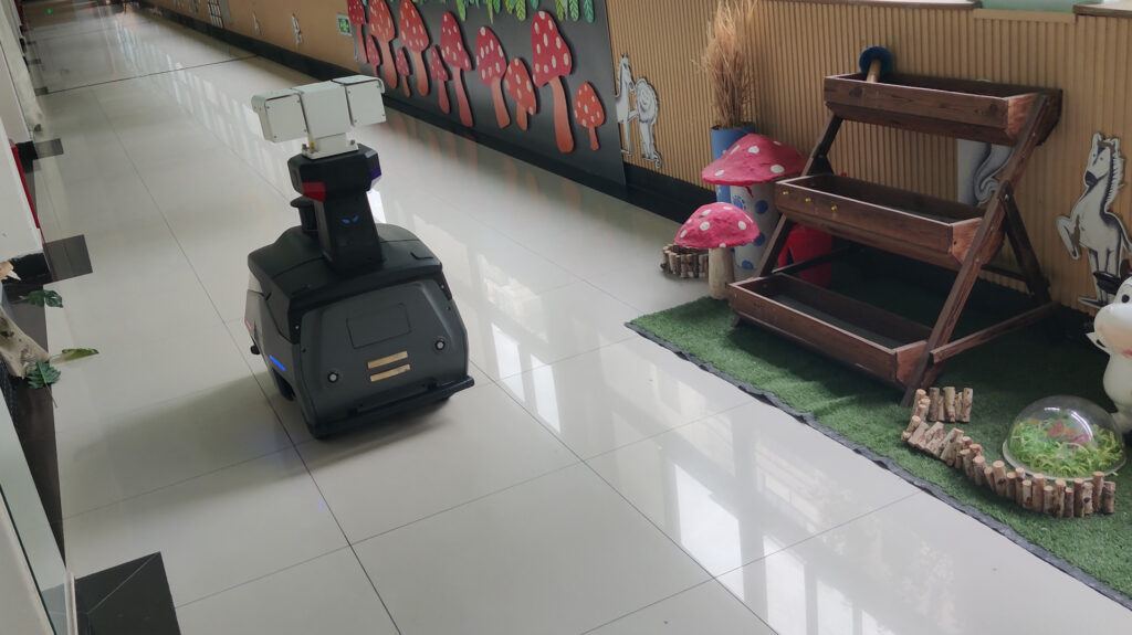 在白天,ANBOT-Y以每小時5—6公里的勻速在幼兒園圍墻、綠化帶等周界區域進行自主巡邏。它采用?第三代3D SLAM導航技術?,能夠精準識別并避開障礙物,單臺設備可覆蓋超百萬平方米區域。機器人預設的巡邏路線覆蓋所有重點防控點位(如圍墻、大門等關鍵區域),及時發現并處理安全隱患,如孩子靠近危險區域、圍墻破損、非法闖入等情況,每一寸角落都逃不過它的“巡查”,真正實現“人巡+機巡”的雙重守護。