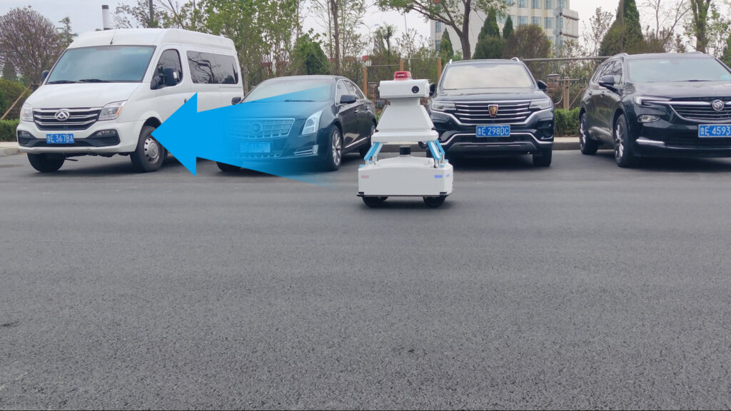 針對道路違規停車問題,機器人搭載先進的 AI 視覺算法,具備車牌識別、行人檢測等智能識別能力。一旦發現違規車輛,便會立即啟動遠程處置手段。