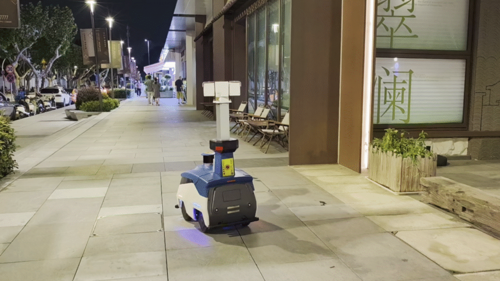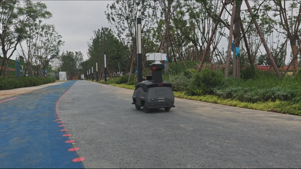 安保巡邏機器人在蘇州華貿中心商業街區承擔起了全方位巡檢任務。通過自主導航功能和激光 SLAM 技術,機器人可在預設巡邏路徑上自動執行任務,實時監控周邊環境,確保巡邏無死角。
