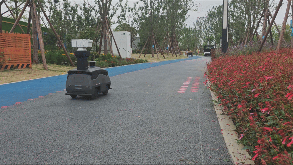 此外,機器人還能通過語音播報提醒及時糾正,助力園區打造文明有序的公共環境。
