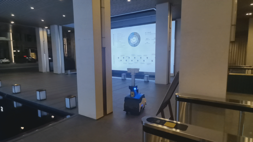 機器人與電梯控制系統深度對接,實現無接觸式跨樓層巡邏,覆蓋辦公區、會議中心等重點區域,夜間巡檢頻次可達每小時2次。