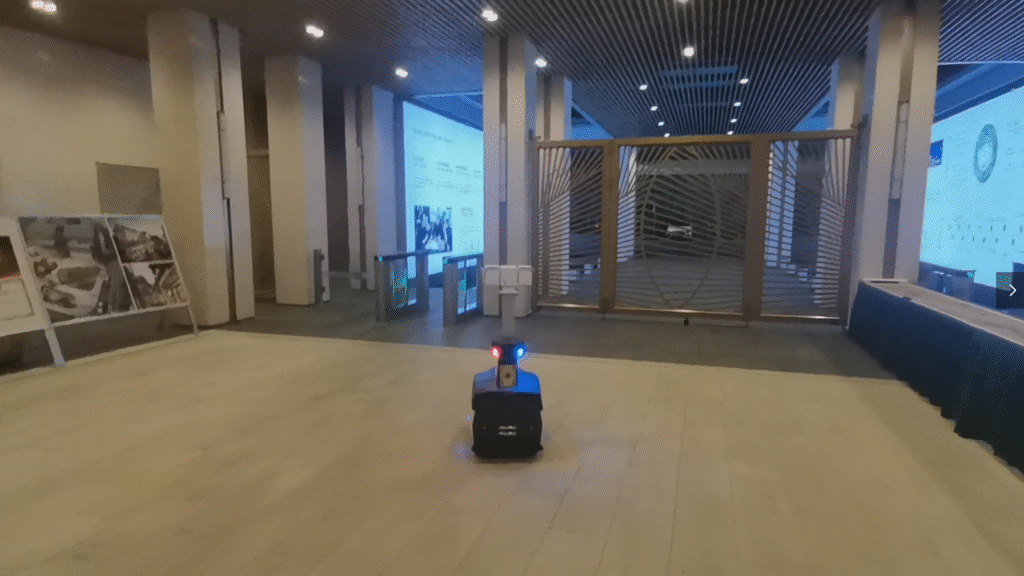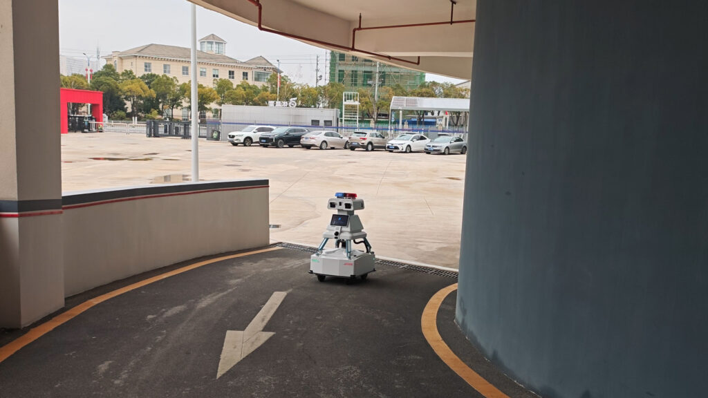 當夜色降臨,小安博特自動切換夜間巡邏模式,對場館外圍、停車場等區域展開“無死角巡邏”: