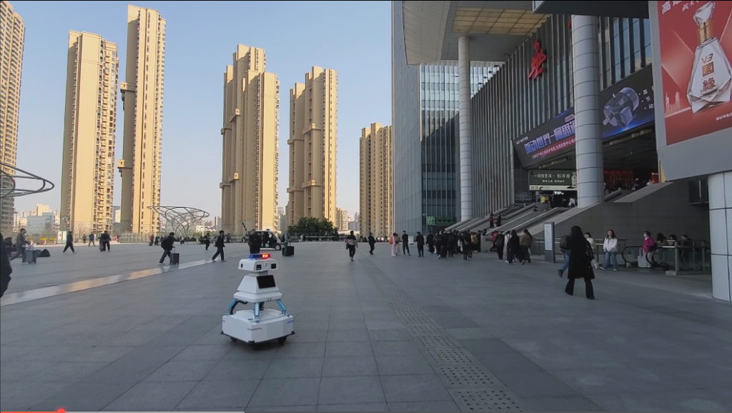 火車(chē)站商業(yè)街店鋪林立,人流量大。安保巡邏機(jī)器人不僅能進(jìn)行常規(guī)的巡邏監(jiān)控,還能協(xié)助工作人員進(jìn)行衛(wèi)生管理,例如監(jiān)測(cè)到垃圾桶溢出后,通知工作人員及時(shí)清掃。
